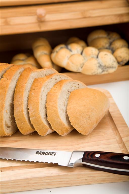 Krájení Potřebujete nože pro každodenní použití? Pracanty, kteří se nezaleknou žádné výzvy? Vyberte si některý z klasických kuchyňských nožů BANQUET s ocelovým ostřím. Například masivní kuchyňské nože řady Savoy jsou charakteristické ostřím z kvalitní nožířské tvrzené oceli s vysokou tvrdostí 54 až 56 HRC. Elegantní rukojeť je vyrobená ze dvou plátů leštěného dřeva „pakka“, je praktická a ergonomicky tvarovaná pro snadnou manipulaci při práci. Keramické nože jsou dnes již nezbytnou součástí moderní kuchyně. Jejich hlavní výhodou je vysoká tvrdost keramického ostří, naprostá odolnost proti skvrnám a rezivění. Keramická čepel do sebe nepropustí žádnou z kyselin, které se vyskytují v potravinách. Oproti klasickým ocelovým nožům zabraňuje keramické ostří jakýmkoliv chemickým reakcím s potravinami, keramické nože jsou chuťové a chemicky neutrální. Vitamíny obsažené v ovoci a zelenině se díky keramickému ostří z potravin neztrácí. Nože se snadno čistí. Keramické nože představují moderní a hlavně zdravý způsob krájení. V nabídce najdete keramické nože s bílým a černým ostřím. Kuchyňské nože s nepřilnavým povrchem představují kompromis mezi oběmi výše uvedenými typy nožů. Vyznačují se ocelovým ostřím potaženým nepřilnavou vrstvou. Široký výběr modelů a všech běžné používaných velikostí, moderní konstrukce a barevná škála zajisté potěší všechny uživatele. Jednotlivé kolekce nožů jsou doplněny o škrabky ve stejném designu. Nedílnou součástí sortimentu je ucelená nabídka prkének vyrobených z tradičních, ale i exotických druhů dřeva, například z bambusu nebo gumovníku, dále z plastu, melaminu a skla s mnoha zajímavými dekory. |